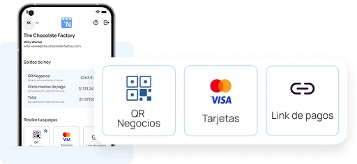 Tus clientes te pueden pagar con tarjeta o desde su banco en compras presenciales o por internet.